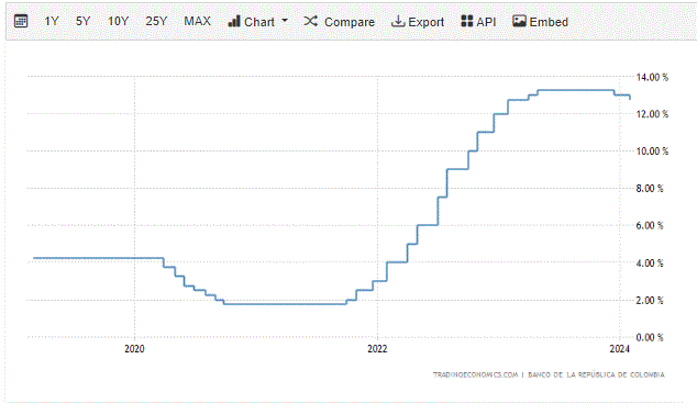 El Banco de la república en enero 31 estableció la tasa de interés al 12,75%. Se espera que en la próxima reunión que está prevista el 29 de marzo esté 3 unidades porcentuales por encima de la inflación según a como se registre para el mes de febrero, y estaría al 11% aproximadamente. En el primes mes de 2024, la inflación alcanzó el 8,35% la variación anual, en el 2023 fue 9,28% y mensual fue de 0,42%, el año pasado 0,92%. La tasa de desempleo o desocupación de estar en 10,03% a 10,01%. Y el PIB creció en el 2023 con 0,6%. Los bonos en Colombia a 10 años se valorizan al 9,85%. La calificación de deuda por parte de Moody’s es estable. Por su parte, el Fondo Monetario Internacional destaca la reducción de la inflación y correcciones en el déficit de cuenta corriente, por la disminución de las importaciones e ingresos mayores por turismo. Manifiesta precaución por el cambio climático entre otros factores externos. Lo que se entendería por información de otros medios: las cadenas de suministros de las rutas marítimas, situaciones geopolíticas, elevaciones en los precios de materias primas.