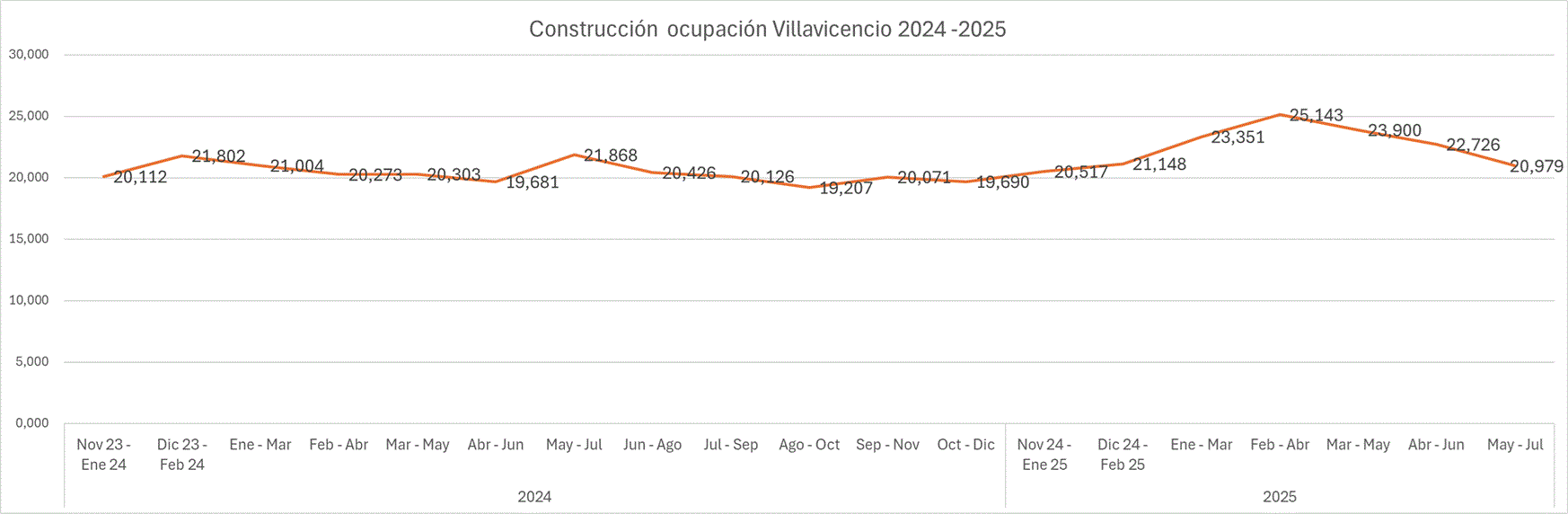 La ocupación en la construcción durante febrero abril 2025, la economía creó 25.143 puestos de trabajo en la construcción. Desde entonces, el mercado laborar en el sector ha dejado de emplear, y son 20,979 en el trimestre mayo julio, comparado el resultado con el año pasado en este mismo periodo eran 21.868, ha dejado de ocupar con 889. En el 2024, en los meses de agosto octubre contó con 19.207 trabajadores.