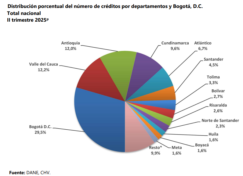 En el total nacional, la cartera hipotecaria del Departamento Meta participa con el 1,6%. En el país en el segundo trimestre de 2025, los desembolsos crediticios por este concepto son de 1 billón 587 millones de pesos.