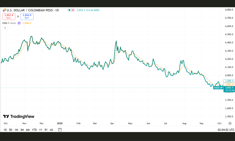 El día 7 de abril de 2025, la cotización alcanzó los $4.436, luego de tres meses, el 11 de junio con $4.191, el movimiento cambiario a favor de la apreciación en tres meses fue $245, la valorización del peso 5,85%. El 15 de octubre cotizó a $3.933, comparativamente con junio $258 la apreciación en este periodo. Entre el máximo registrado en abril y el mínimo este año el 18 de octubre con $3.808, el rango es de $383, el promedio $4.101.