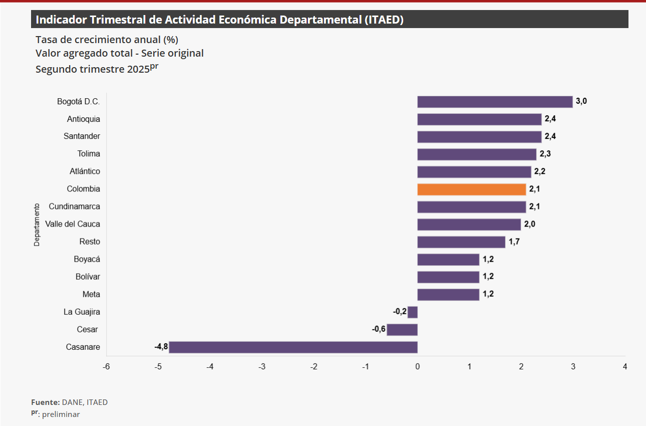 La economía en el Departamento creció 1,2% en el segundo trimestre 2025