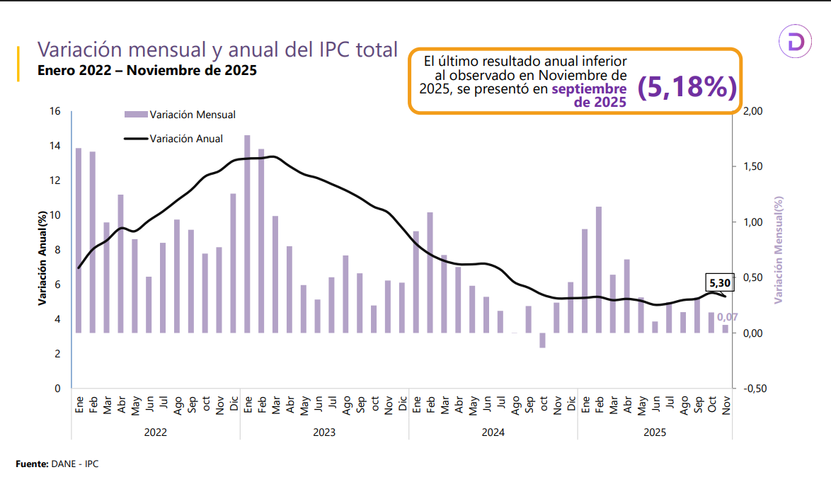 En el transcurso de 2025 desde junio los precios en la anualidad comenzaron a tener tendencia alcista cuando en mitad de año las alzas fueron de 4,82%, en octubre alcanzó el 5,51%. Aunque el reciente dato es inferior comparativamente con el mes anterior, los gastos varían persistiendo el fenómeno de encarecimiento, lo cual afecta el poder adquisitivo a más del 5,30% en Colombia.