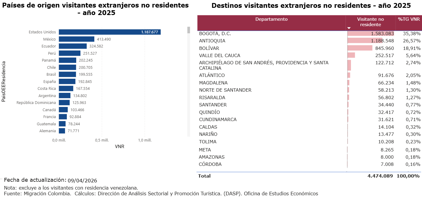 8.265 turistas extranjeros recibió el Departamento y 4’474.089 Colombia durante el 2025