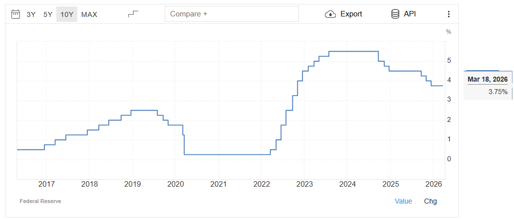 La Tasa de Interés de la Reserva Federal de los Estados Unidos está en 3,50% a 3,75%, la decisión conservó la fijación de la Política Monetaria la cual rige el dólar desde el 18 de marzo, las expectativas están en la próxima fecha el 29 de abril, la continuidad o no del ajuste monetario. El desempleo está con 4,30%, y la inflación más 3,30%, los precios con más presión inflacionaria, la gasolina más 18,9% entre las explicaciones, la volatilidad y alza del petróleo referencia WTI entre los USD$85 y USD$100 por la situación geopolítica en Irán. El crecimiento económico estimado y próximamente revelado el 30 de abril, según las expectativas sería 1,8% para el primer trimestre. Los bonos del tesoro a 10 años variaban más 4,30% a la fecha.