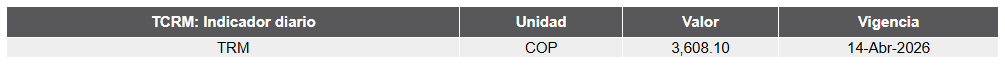 Fuente Superintendencia financiera de Colombia Tasa de Cambio Representativa del Mercado