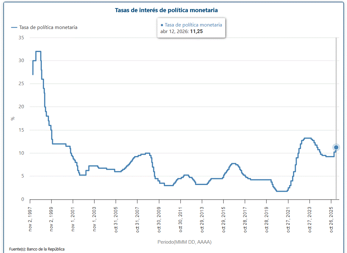 En Colombia, la Tasa de Política Monetaria establecida por el Banco de la República está al 11,25%, las expectativas de los expertos de las finanzas sería el ajuste de 11,75%, próximas reuniones ante la posibilidad de la ausencia del Ministro de Hacienda y Crédito Público, Germán Ávila. Según, las cifras disponibles, la desocupación está al 9,20%, la inflación varió al alza 5.56%, sin regulados como servicios públicos y alimentos el 6,00%. En el cuarto trimestre de 2025 el crecimiento fue de 2,30%. Los bonos de deuda pública a 10 años variaban 12,7%.